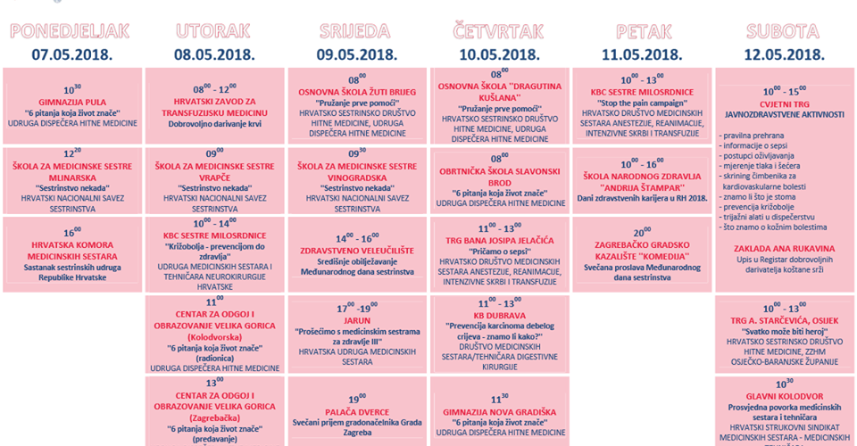 Povodom obilježavanja Međunarodnog tjedna sestrinstva, te u okviru djelokruga Udruge, organizirali smo nekoliko javno-zdravstvenih akcija pod nazivom „Šest pitanja koja život znače“ s osnovnim ciljem širenje samosvijesti prisutnih glede hitne medicinske službe.